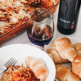 The perfect touch to this lasagna is zhuzhing up some store bought crescent rolls which happen to be accidentally vegan! Simply unroll them, brush them with a little olive oil, sprinkle with garlic powder and a little vegan mozzarella. Roll up the crescent and bake according to package instructions. Easy peasy!