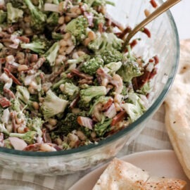 Traditional dressings for broccoli salad is: mayo, vinegar and sugar. But I take it to the next level and swap in BALSAMIC vinegar and brown sugar and let me tell you, it takes this classic salad from good to FANTASTIC!